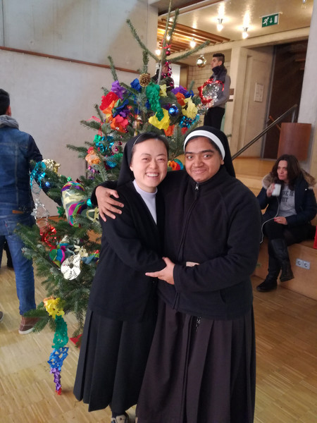 Heute haben wir, die A2, den Weihnachtsbaum für das Sprachenkolleg geschmückt.