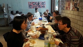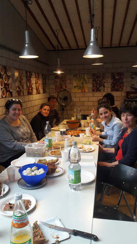 Zuerst haben wir auf Deutsch erklärt, welche Zutaten das Gericht hat und wie man es zubereitet. Dann haben wir sehr viel gegessen und uns unterhalten. Es war ein schöner Nachmittag!