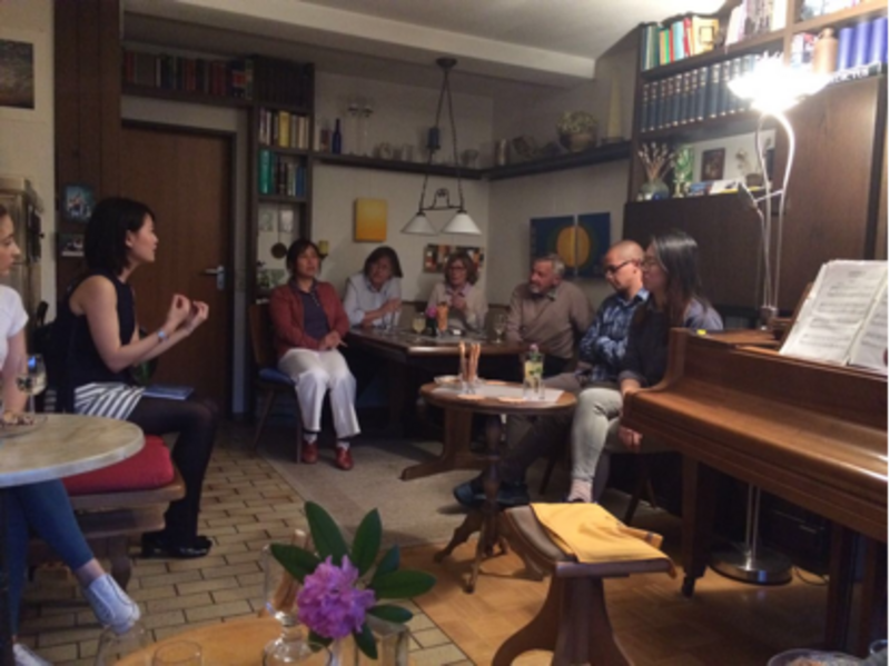 Die eingeladene Leute sind nacheinander angekommen. Die beste Teil des Abends hat angefangen: über 10 Leute von 7 Ländern, von 18 bis 80 haben über ihre Leben, Heimländer und Meinungen unterhalten. Verschiedene Kulturen sind ausgetauscht worden. Vor dieser Unterhaltung hat Herr Boll uns eine kleine Geschichte erzählt, die sagt, dass der Austausch der Meinung und Kultur ziemlich wichtig ist. Ich komme aus China. In China haben wir die gleiche Geschichte, und diese Geschichte kennt jeder von der Schule. Wie Herr Boll gesagt hat, haben alles etwas gemeinsam: die Menschlichkeit.