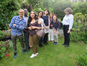 Am 18. Mai haben wir, die Schüler der B1 Niveau des Sprachenkollegs, uns in der Stadtmitte Freiburgs Bertoldsbrunnen getroffen, dann sind wir zusammen mit der Straßenbahn gefahren um Familie Boll zu treffen. Von dem Treffpunkt aus sind wir in Begleitung von Herrn und Frau Boll zu ihrem Haus gefahren. Nachdem Frau und Herr Boll uns ihr Haus gezeigt hatten und wir unsere Heimatländer mit einem Punkt auf der Weltkarte markiert hatten, haben wir uns ins Wohnzimmer gesetzt. Zuerst hat Herr Boll uns eine Geschichte erzählt die um einen König und fünf Weise geht. Die Bedeutung der Geschichte ist, dass keiner alles wissen kann und jeder ein Bild unter anderem Aspekt sieht und gemeinsam wir ein Bild besser beschreiben können. Dann haben wir uns sowie unsere Heimatländer vorgestellt und auf die Fragen nach unseren Heimatländern geantwortet. Auf diese Weise haben wir verschiedene interessante Traditionen entdeckt, darüber habe ich mich riesig gefreut.
